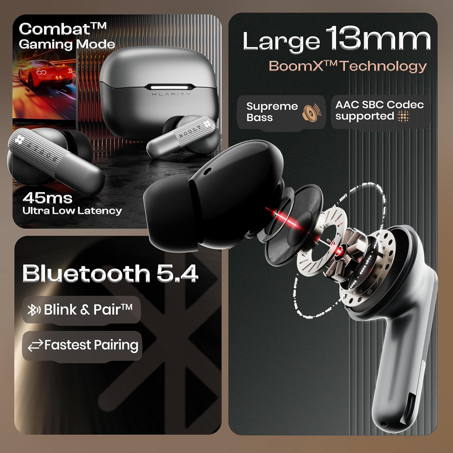 GOBOULT Klarity 3 6-Mic Hybrid ANC Upto 50dB in Ear Earbuds, Spatial Audio, Dual Device Pairing, 50H Playtime, Wind Noise Reduction 6 Mic Calling, Type-C Fast Charging, 13mm Bass Driver TWS (Grey)