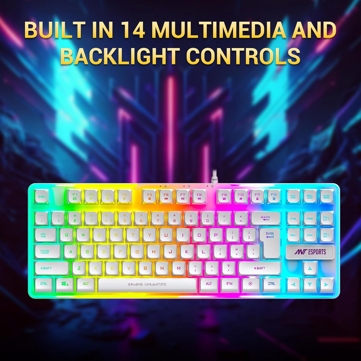 Ant Esports MK700 V2 Membrane TKL Wired Gaming Keyboard, 87 UV Coated Mechanical feel Keys Cool RGB Backlight Waterproof Keyboard for PC Laptop Mobile Tablets Gaming, Design and Work Mercury White