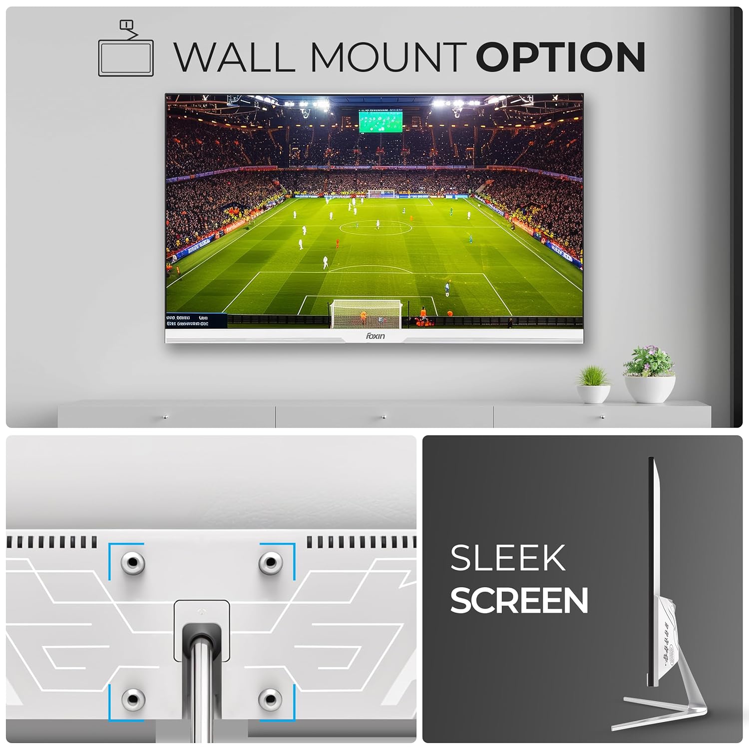 Foxin Elite 27 Inch FHD Flat LED Monitor, IPS Panel, 100Hz, 1ms, HDMI and VGA, sRGB, Anti-Glare, Flicker-Free, Frameless, Slim, Wall Mountable | White