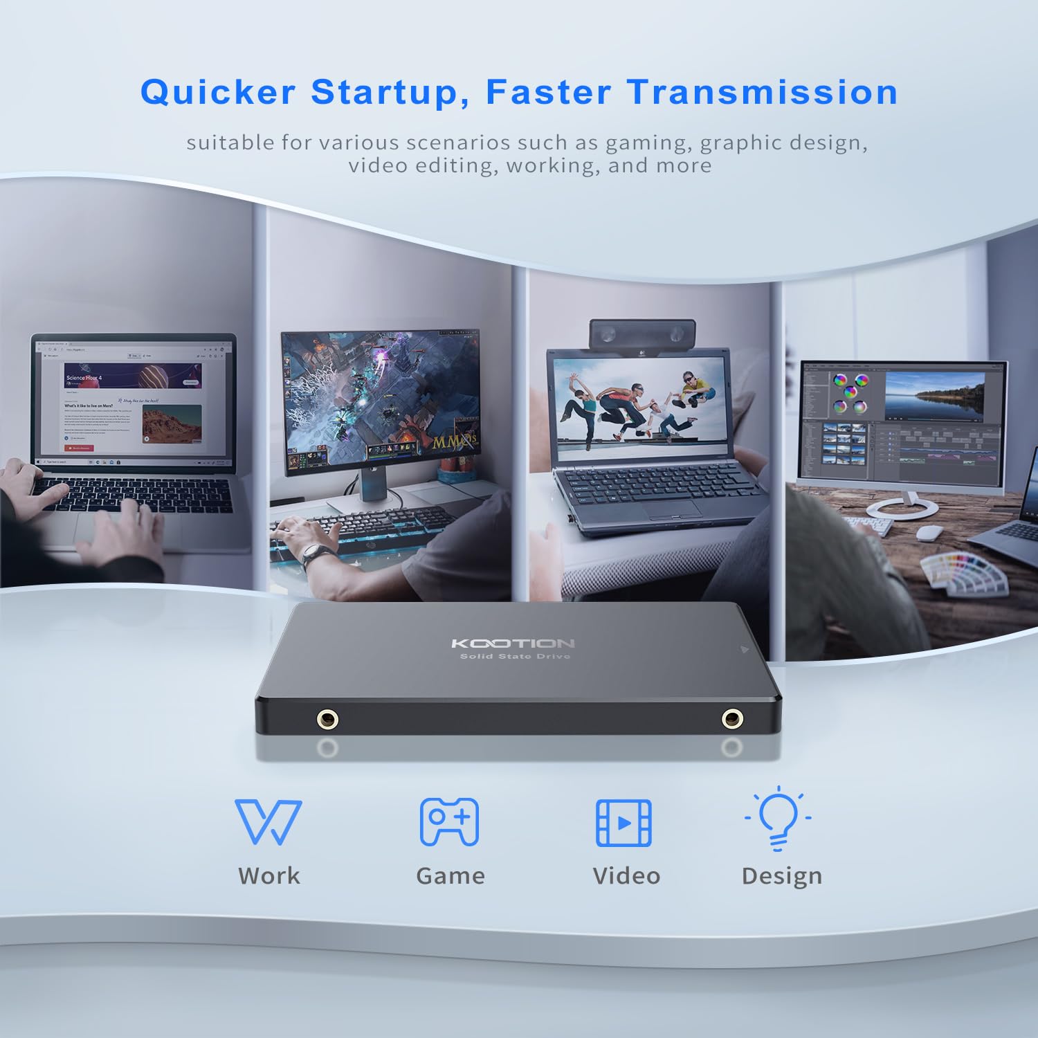 KOOTION 128GB Internal SSD SATA III 6Gb/s 2.5” Solid State Drive 3D NAND Flash Advanced SSD Hard Drive Up to 450MB/s SATA 3 SSD Upgrade Performance for PC Laptop