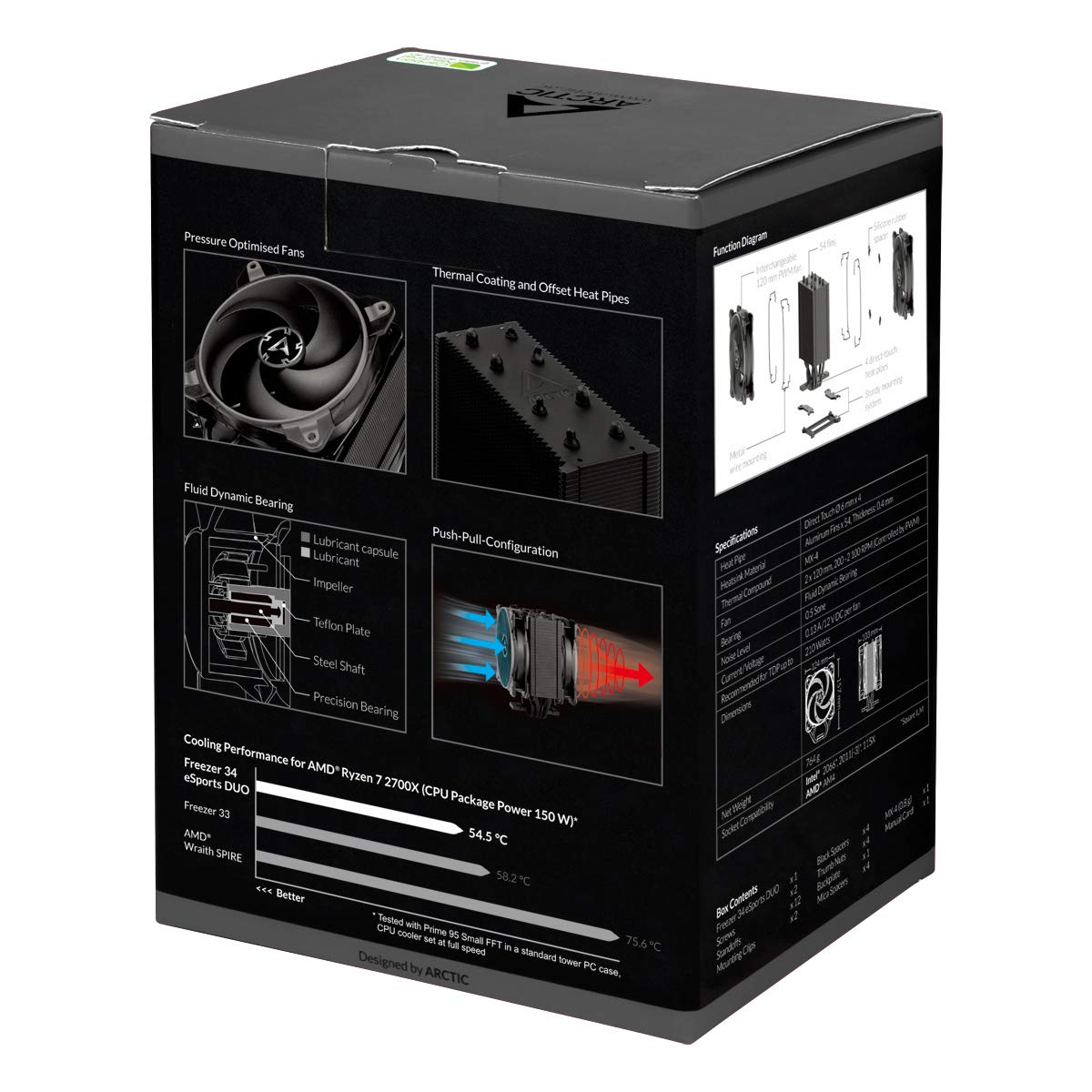 ARCTIC Freezer 34 Esports Duo - Tower CPU Cooler with BioniX P-Series case Fan in Push-Pull, 120 mm PWM Fan, for Intel and AMD, LGA1700 Compatible - Grey