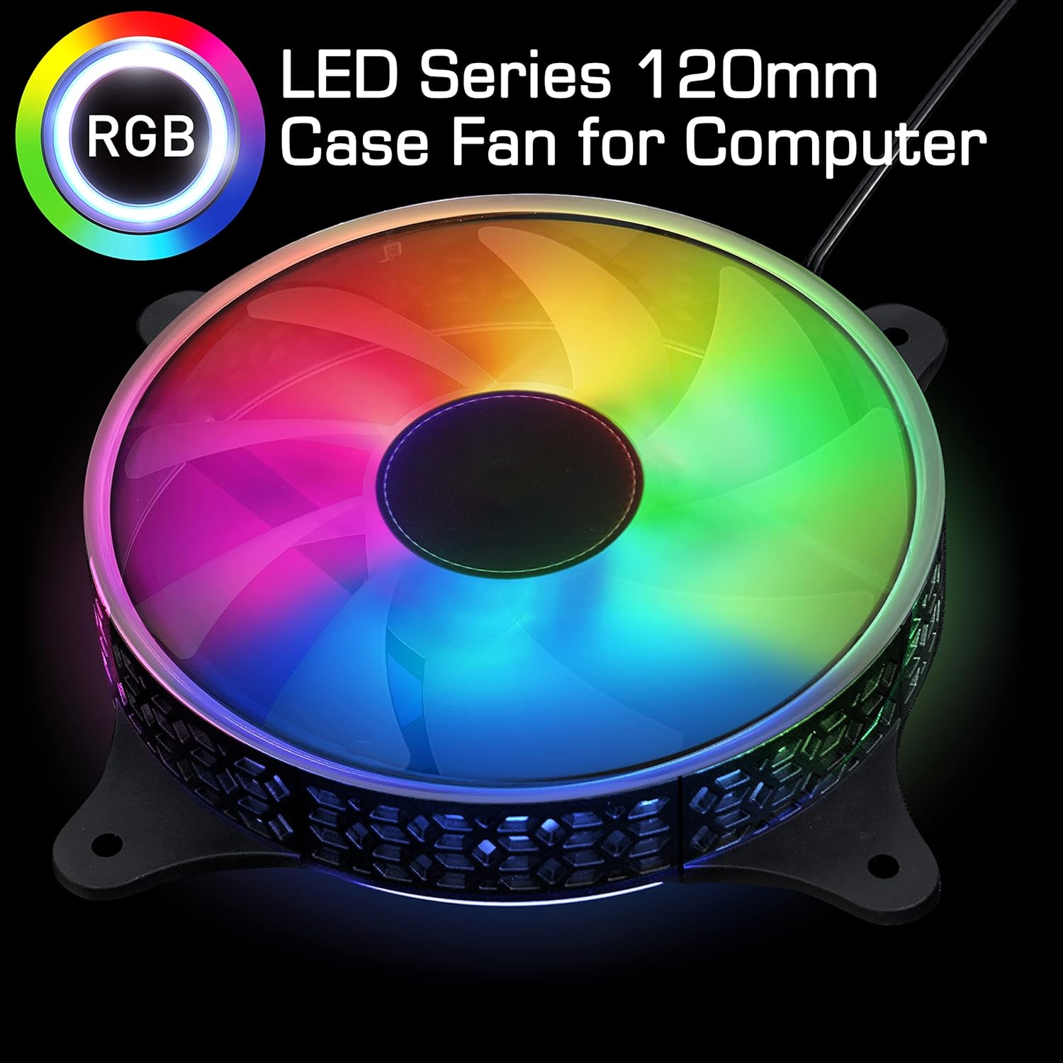 RGB LED CPU Cooling Fan 80mm (High Airflow, Silent Operation, Multi-Color Lighting, 3/4 Pin Connector, Compatible with Desktop PC Cabinet)