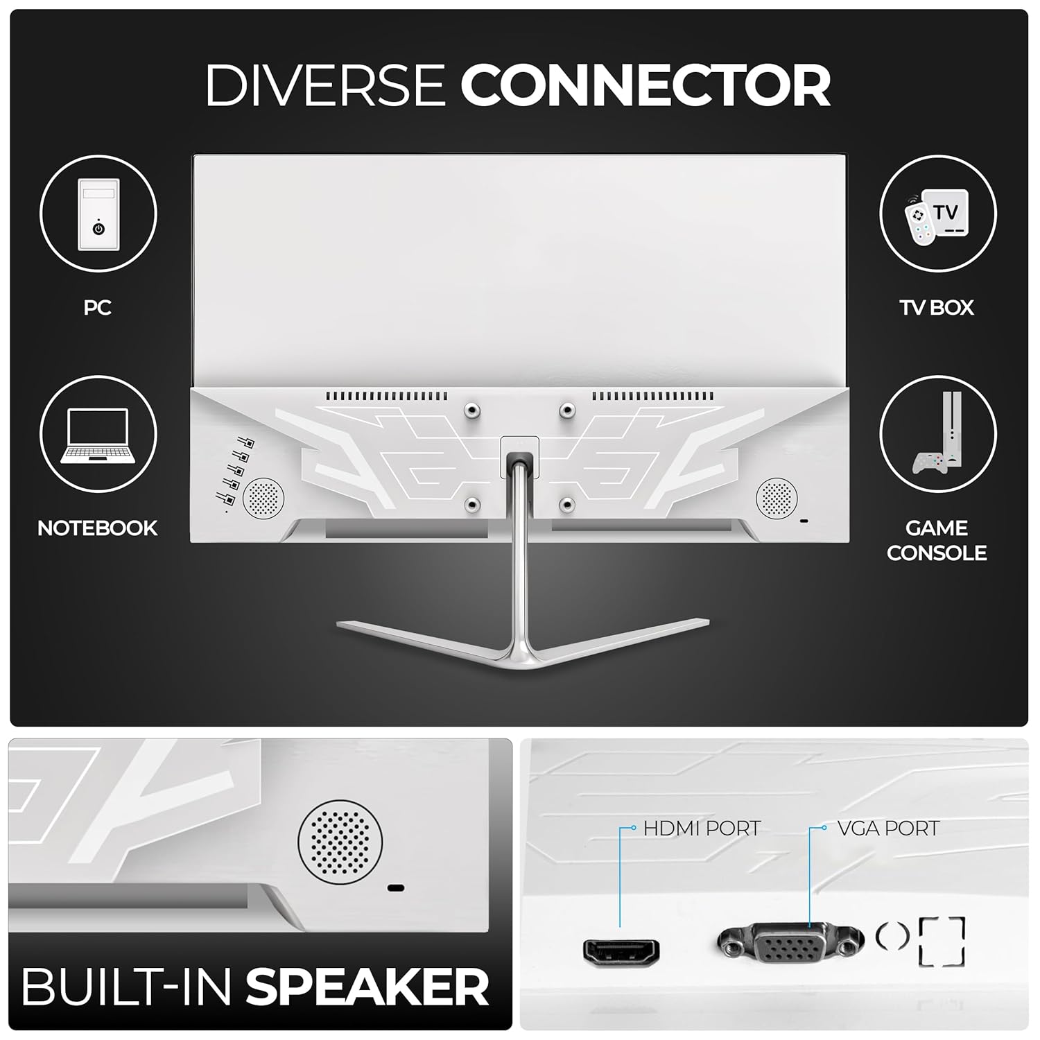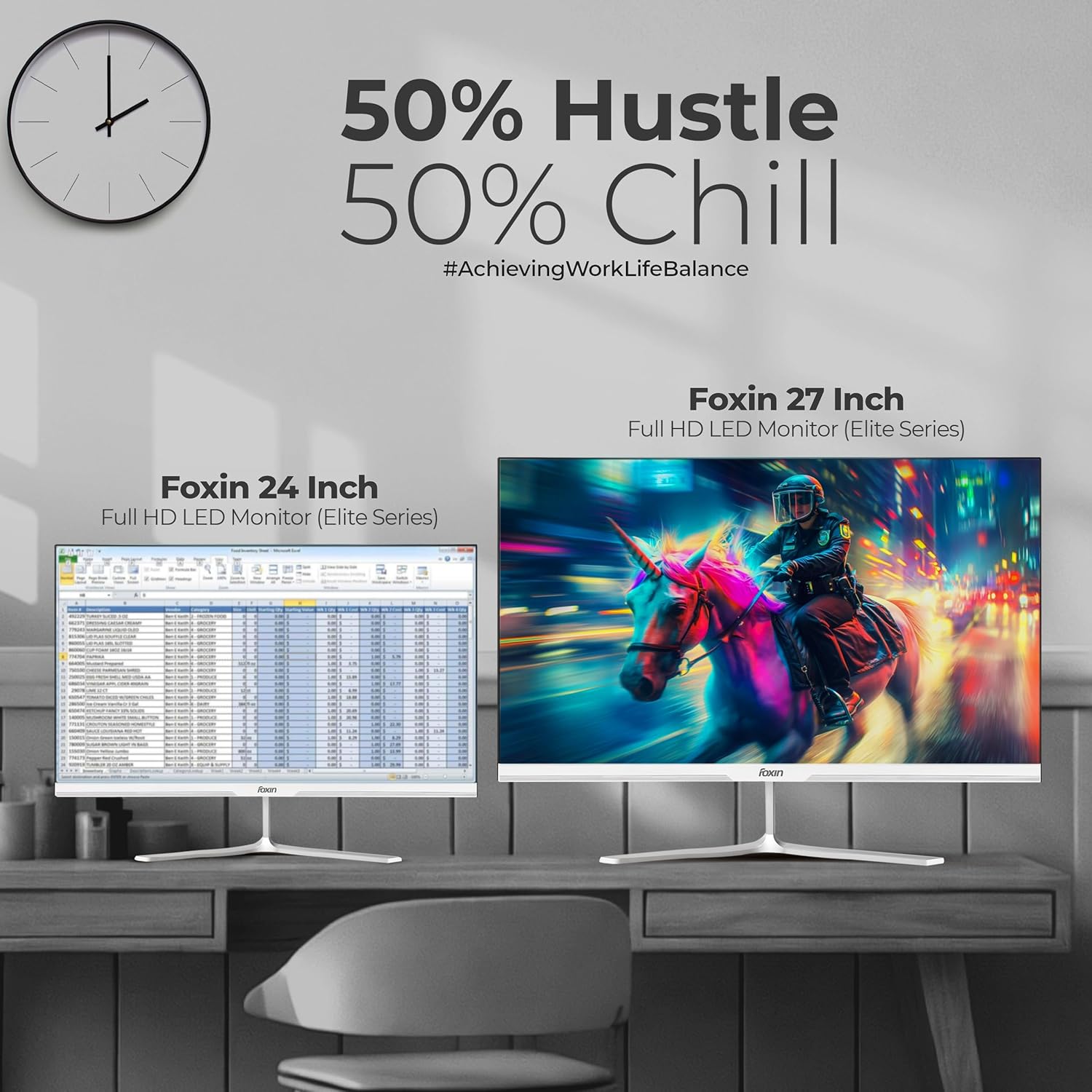 Foxin Elite 27 Inch FHD Flat LED Monitor, IPS Panel, 100Hz, 1ms, HDMI and VGA, sRGB, Anti-Glare, Flicker-Free, Frameless, Slim, Wall Mountable | White