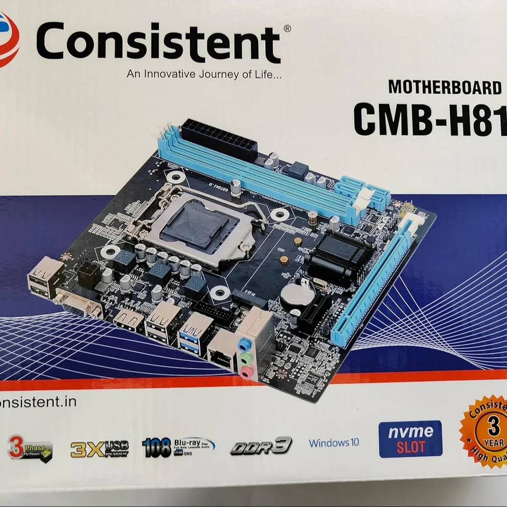Consistent H81 DDR3 Motherboard (LGA 1150 Socket, 4th Gen Intel i3/i5/i7 CPU Support, Micro-ATX, Black)