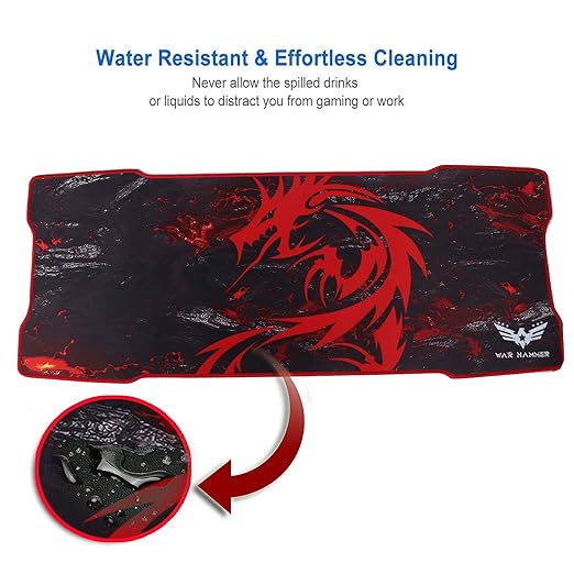 WAR HAMMER GX1050 Extended Size Gaming Mouse Pad| Stitched Edges| Non-Slip Rubber Base|Computer Laptop|Keyboard Mouse Pad for Office & Home