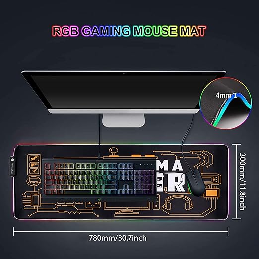 Speed RGB Gaming Mouse Pad, Soft Glowing 14 LED Modes, Gaming Desk Keyboard Pad, Mouse Mat, Non-Slip Rubber Base - 78x30 cm - I am a Gamer Quote