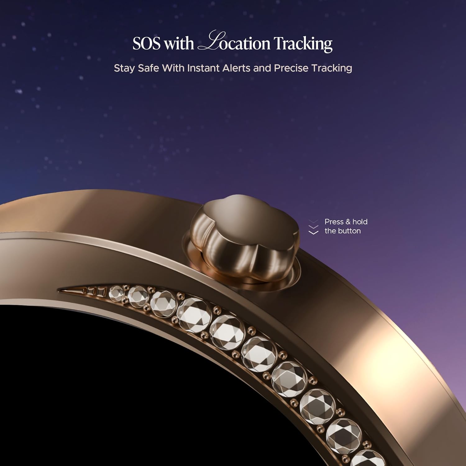 boAt Enigma Gem Womens Luxury Smart Watch w/ 1.19 (3.02cm) AMOLED Display, Emergency SOS Live Location Sharing, Watch Face Studio, QR Tray, BT Calling, 700+Active Mode, HR & SpO2 (Rose Gold)