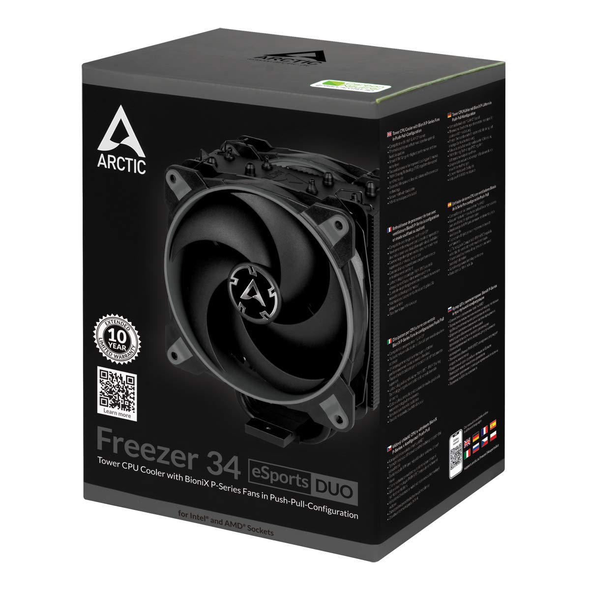 ARCTIC Freezer 34 Esports Duo - Tower CPU Cooler with BioniX P-Series case Fan in Push-Pull, 120 mm PWM Fan, for Intel and AMD, LGA1700 Compatible - Grey