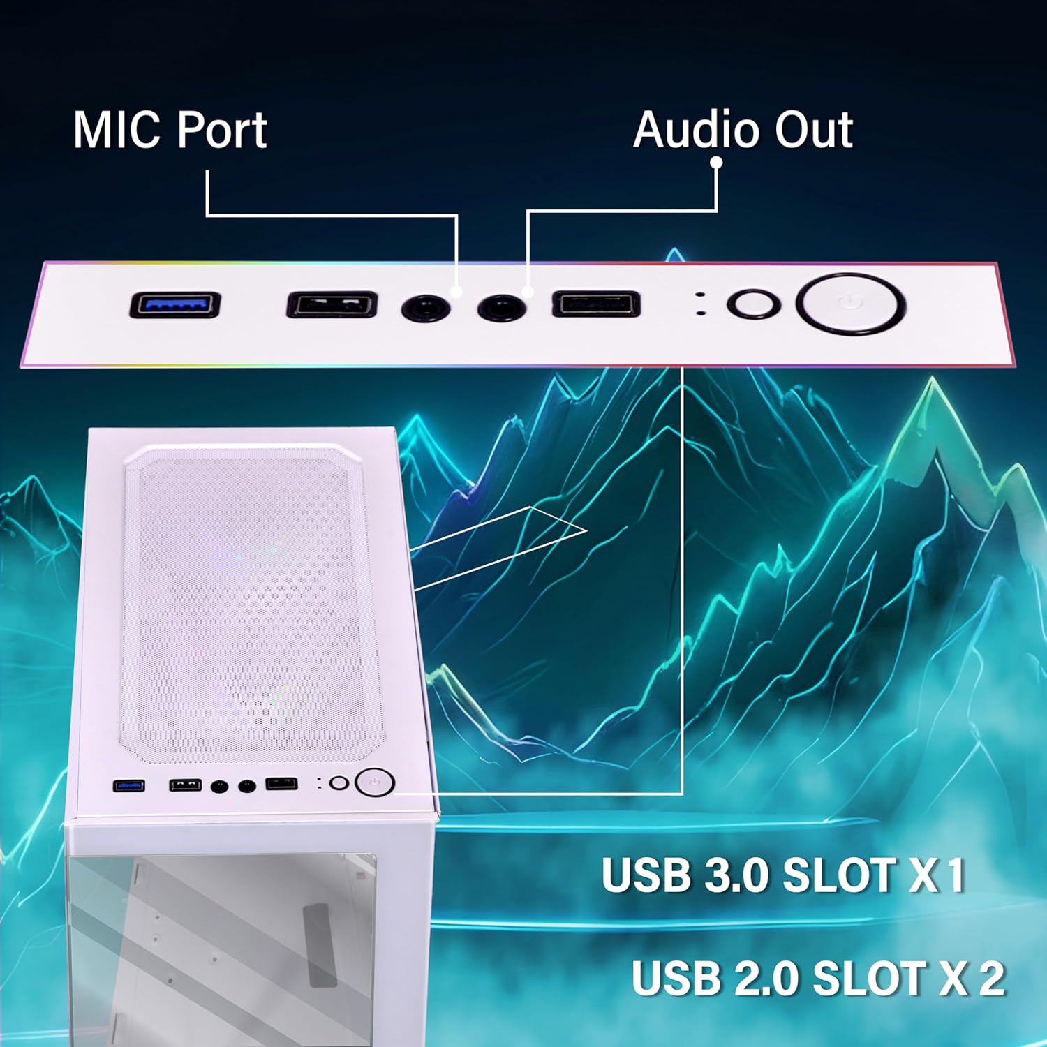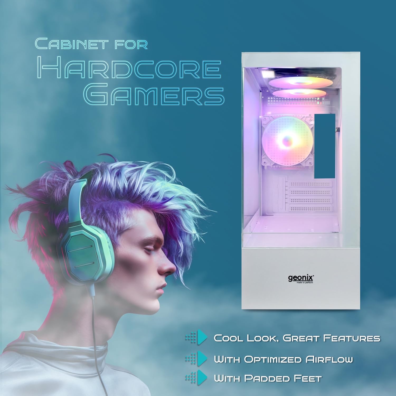 GEONIX Tempered_Glass X30 ATX Gaming Cabinet/Computer Case with 3 RGB Fans,USB 2.0 Slot,2 HDD Slots,USB 3.0 Slot,7 Expansion Pci Sockets,Top Mounted Mic and Audio Port(White)